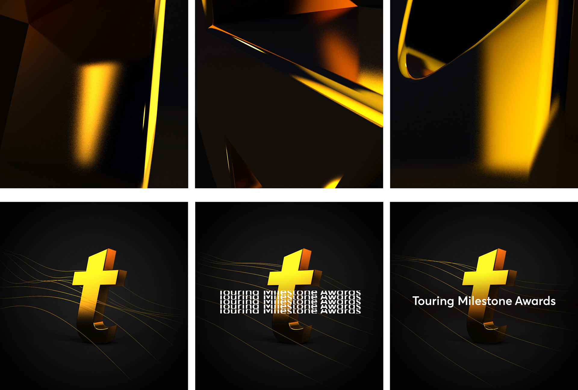 Ticketmaster honored its artists who had record numbers of concert ticket sales with their Touring Milestone Award and publicized it on social media platforms. This intro animation features mysteriously-lit macro shots of the dimensional Ticketmaster "T," hinting at the award's golden trophy, while sound-synced waves — reminiscent of a music staff — allude to the concert tours at the heart of the award. The echoed text animation visually reinforces the repetition of lines in the waves. I did the modeling, texturing, lighting, and animation for this piece, using a combination of Cinema 4D and After Effects.